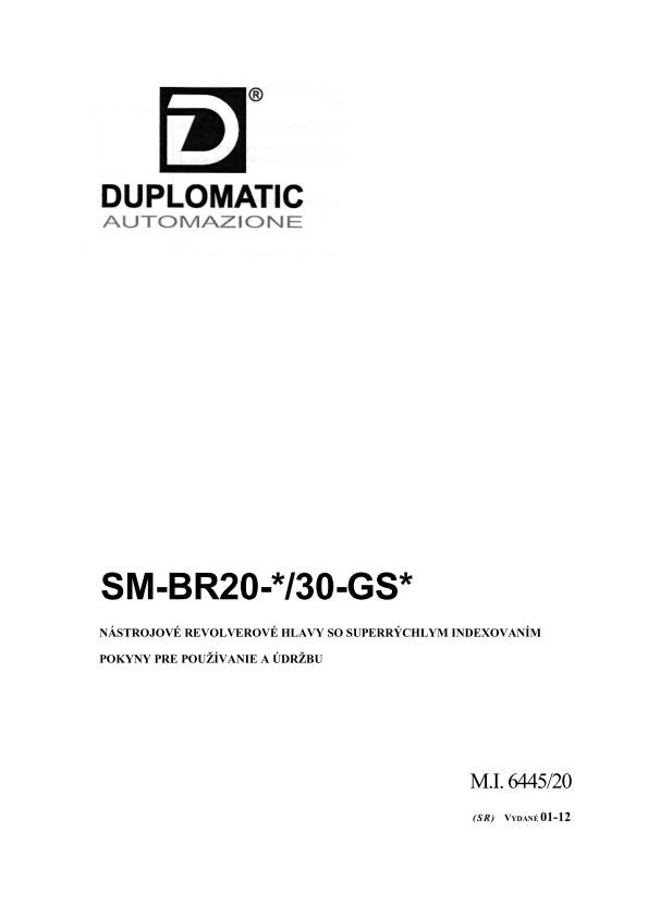 NÁSTROJOVÉ REVOLVEROVÉ HLAVY SO SUPERRÝCHLYM INDEXOVANÍM POKYNY PRE POUŽÍVANIE A ÚDRŽBU
